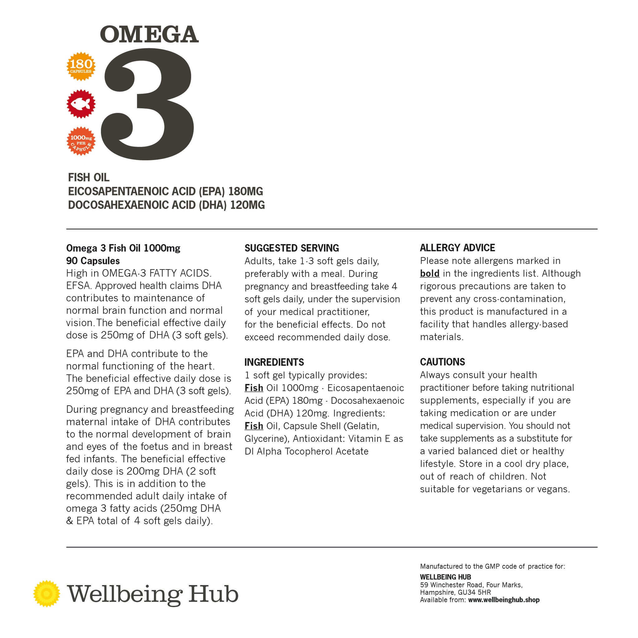 - Eicosapentaenoic Acid (EPA) 180mg
